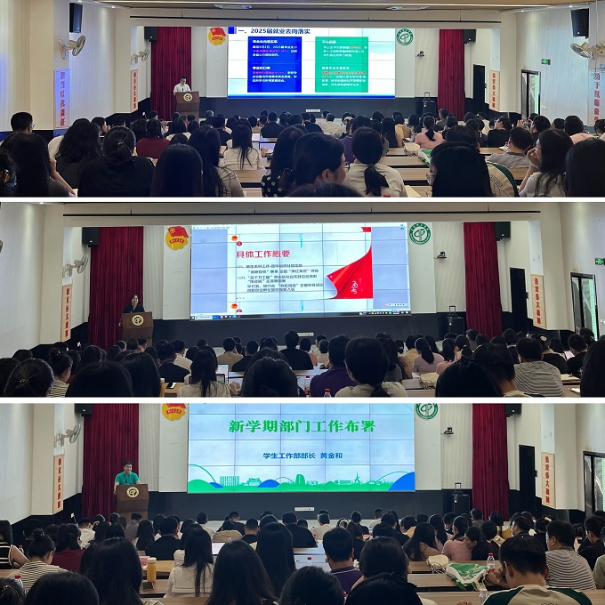 随后,团委书记劳丹、就创部副部长王明波、学工部部长黄金和先后围绕新学期相关重点工作进行部署安排。