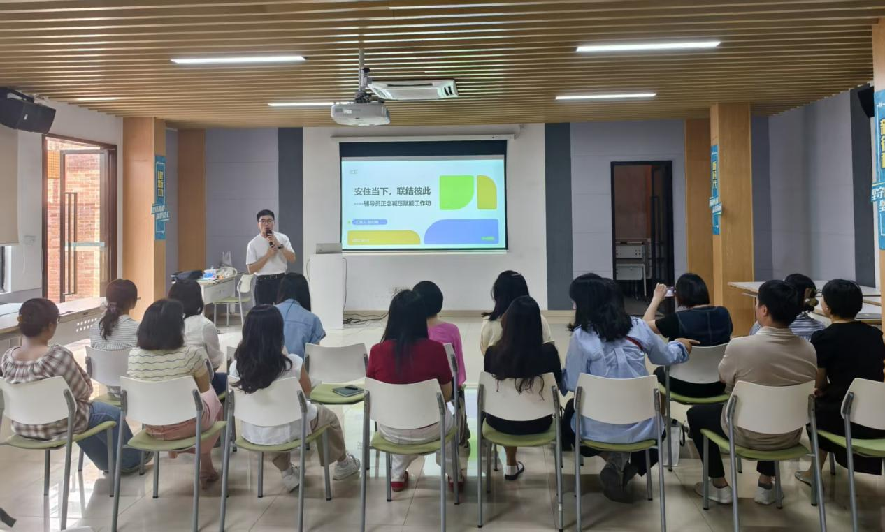 活动中,老师们沉浸式体验 “正念之旅”:跟随引导参与正念冥想安住当下,通过正念瑜伽八段锦放松身体,在正念饮食环节专注品味葡萄干提升觉察力,还以两人一组形式开展 “正念沟通 - 压力时刻” 互动,互相诉说与倾听工作生活中的压力瞬间,学习压力情境下的高效沟通技巧。