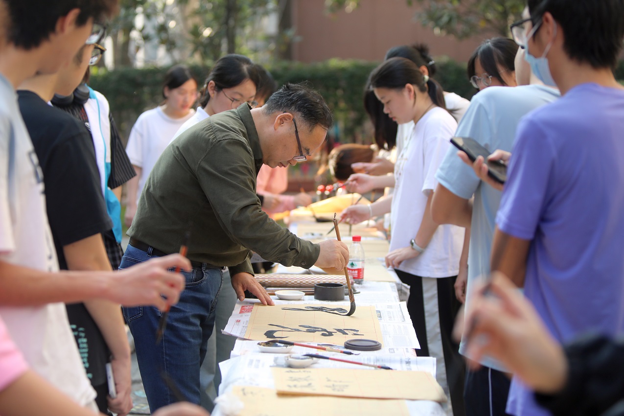 活动现场设置多个特色体验环节:在服饰体验区,同学们身着各民族特色服饰,感受不同民族的审美与工艺之美;书法体验环节,文学与传媒学院杨继龙老师与学生共同书写吉祥语和经典诗词,在笔墨流转中触摸中华文字的深厚底蕴;传统射箭活动则让同学们体验民族体育魅力,拉弓射箭间感悟其中蕴含的文化内涵。亲身参与的互动形式,让同学们近距离领略各民族文化风采,深化了对多元一体中华文化的理解与认同。